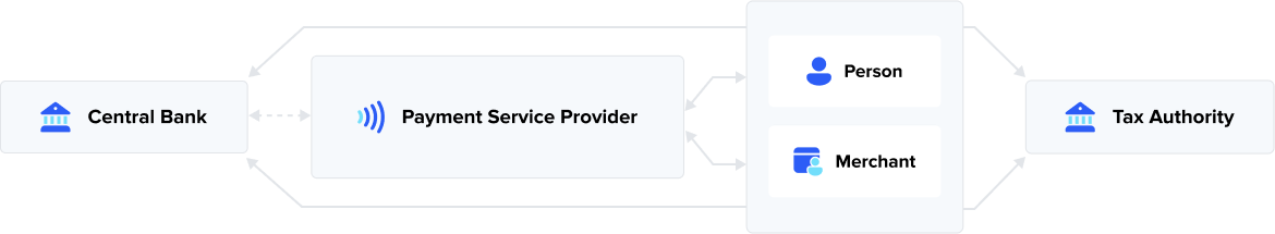 On the retail side of the network, the same commercial banks serve as an intermediary layer, responsible for on-boarding and communicating with customers and conveying payment messages to other banks and the Central Bank itself.