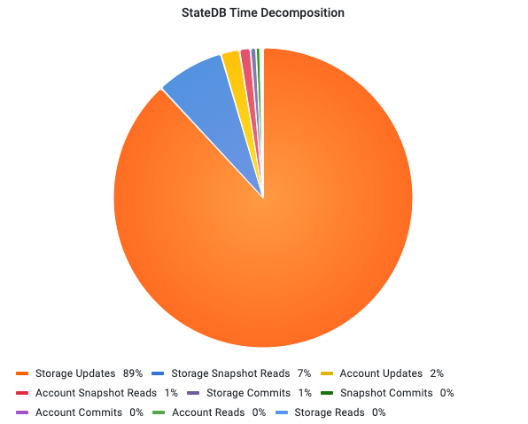 The timeline graph shows that Storage Updates is the runtime dominant operation in StateDB.