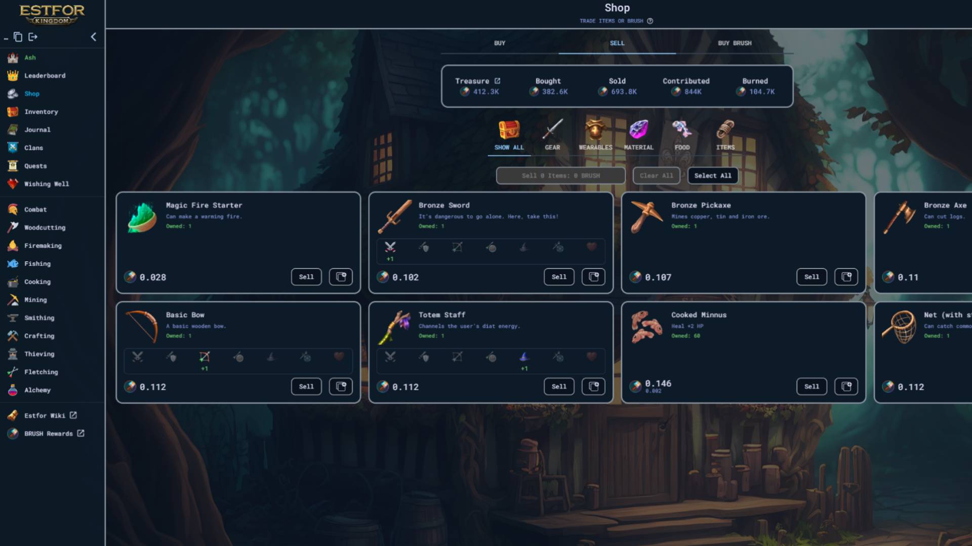 By creating heroes, players can fight monsters, craft weapons, mine minerals, and other activities that will level up their heroes’ 15+ individual skills and earn them items. Players can buy and sell a variety of these items through the in-game shop with the BRUSH token or trade all 350 unique items on PaintSwap and other secondary marketplaces. Since Estfor Kingdom is a blockchain game, even the heroes are NFTs that can be traded.