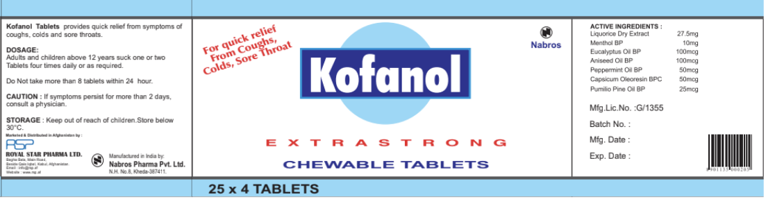 - 10,000 items of Kofanol Chewable Tablets: Produced by Nabros Pharma, these tablets help relieve coughs, colds, and sore throats.