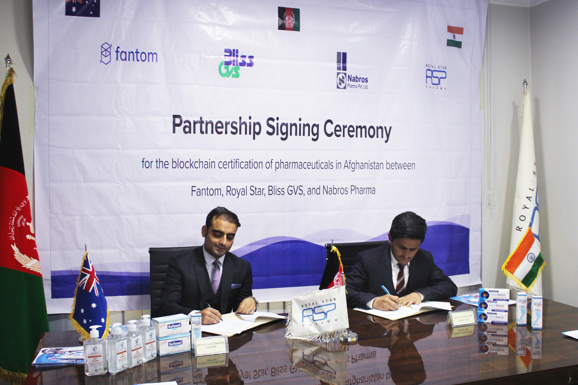Fantom, with the endorsement of the Afghanistan Ministry of Health, has partnered with Royal Star, one of the biggest pharmaceutical distributors in Afghanistan; Nabros Pharma, a privately-owned pharmaceutical producer in India; and Bliss GVS, a public company listed on the National Stock Exchange of India and with revenues exceeding USD$120m. Fantom will be involved in the tracking of four products, one of which is a new hand sanitizer endorsed by the World Health Organization to help combat COVID-19.