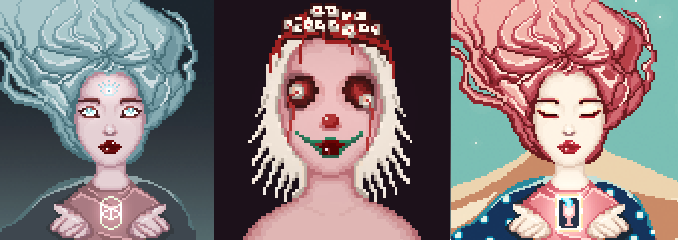 More recently, I launched Bitwitches: Banners, an exclusive free mint for the holders of my two previous collections. This banner collection of 333 NFTs comes with 18 color palettes, matching most pfps. The Bitwitches are inspired by the lore from my previous collections.