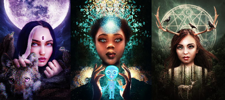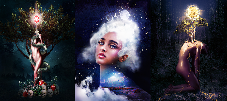 The "Witches Oracle" reflects all those primordial archetypes and emotions through intense colors and light along with an intimate imagery full of women, wild animals, trees, and rivers. I wanted to show the aspects of the myths and of the Feminine: wild, wise and free… living forever on the Fantom blockchain.