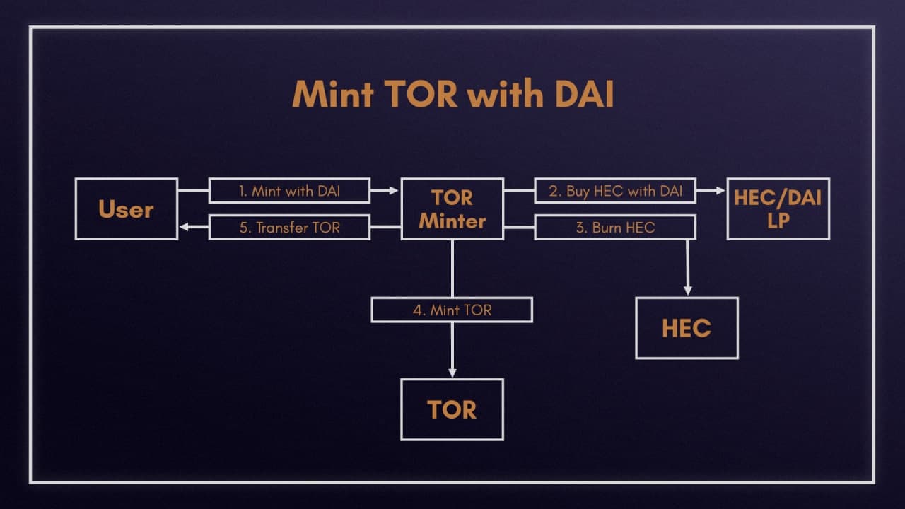 TOR is an algorithmic stablecoin that also works to make HEC deflationary: in essence, minting TOR burns HEC, so when the TOR stablecoin does well, so does HEC!