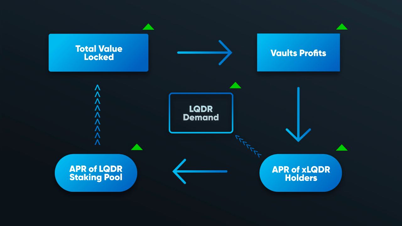 Our current model effectively links our TVL with our valuation: TVL growth increases revenue for xLQDR holders, which incentivizes LQDR holders to lock their tokens.
