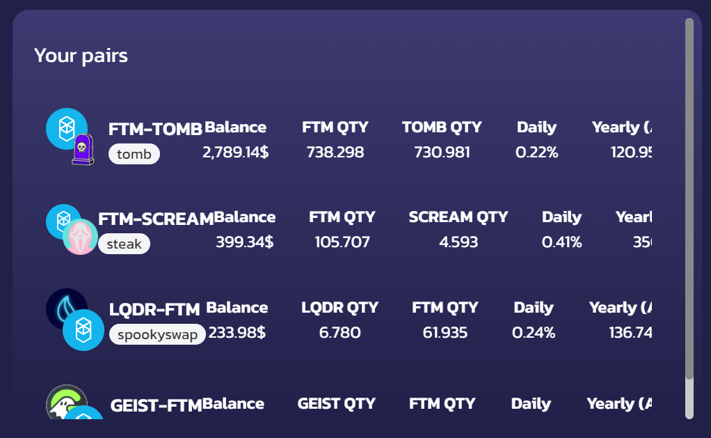 Once deposited into a pool, our Zapper smart contract automatically converts FTM into Liquidity Pool (LP) tokens and deposits them for you.