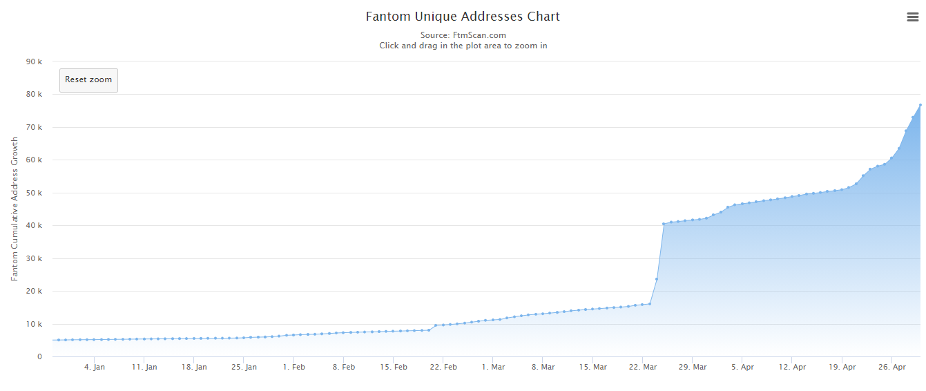 Over 77,000 Fantom wallets have been created by users. That is a 70% increase month-over-month.