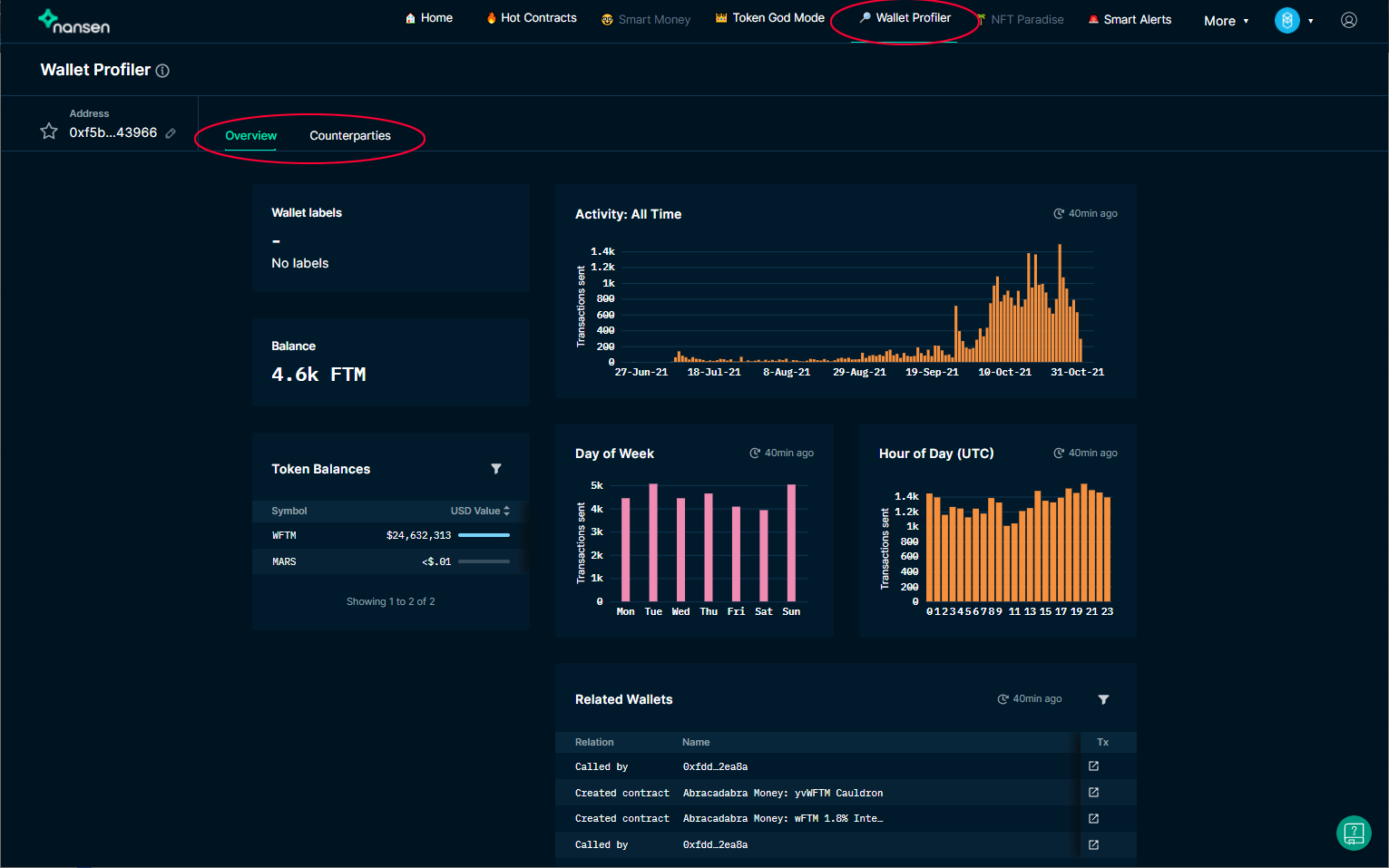 - selecting Wallet Profiler at the top of the screen and entering an address, or
