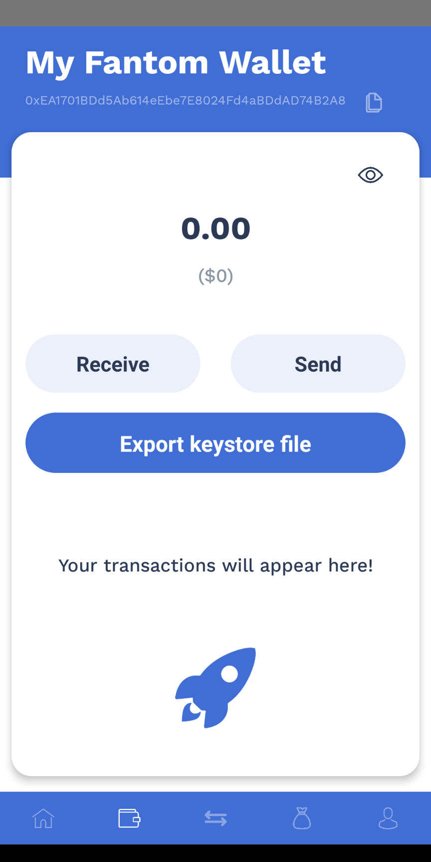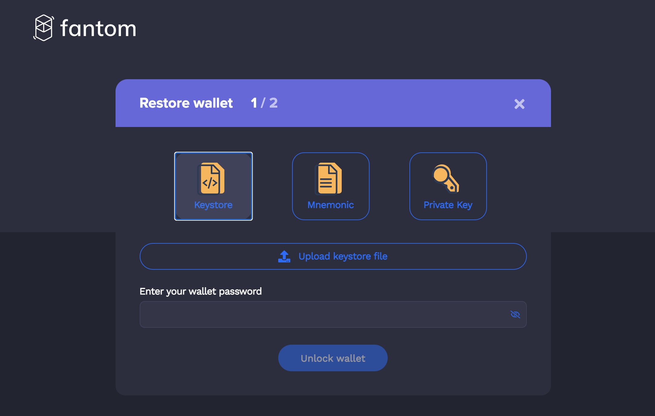 Head over to https://pwawallet.fantom.network/ and import the keystore you just created, using the password you chose in the previous steps.