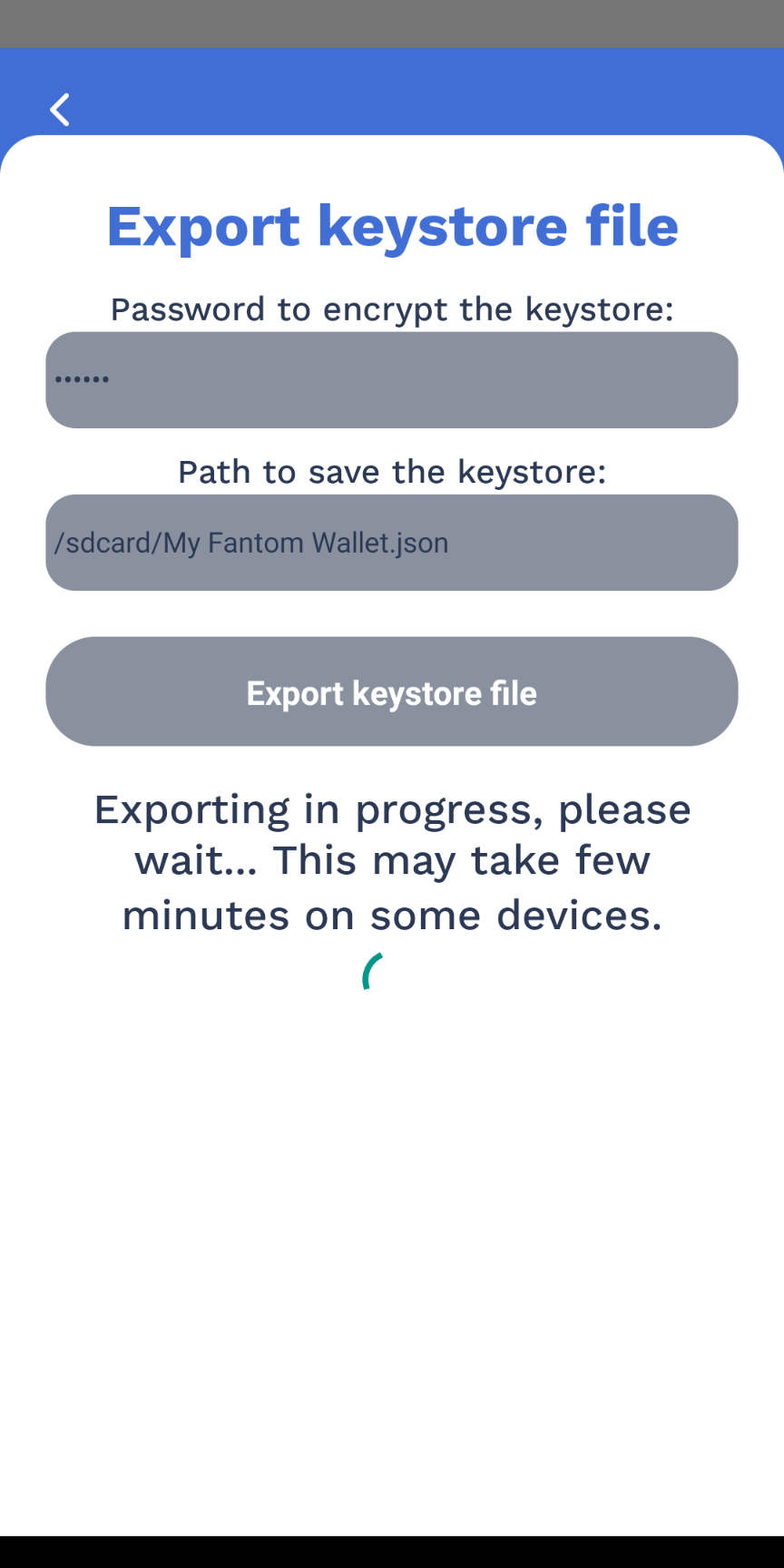 Tap on the wallet card to open the wallet. You'll see a new button Export keystore file.