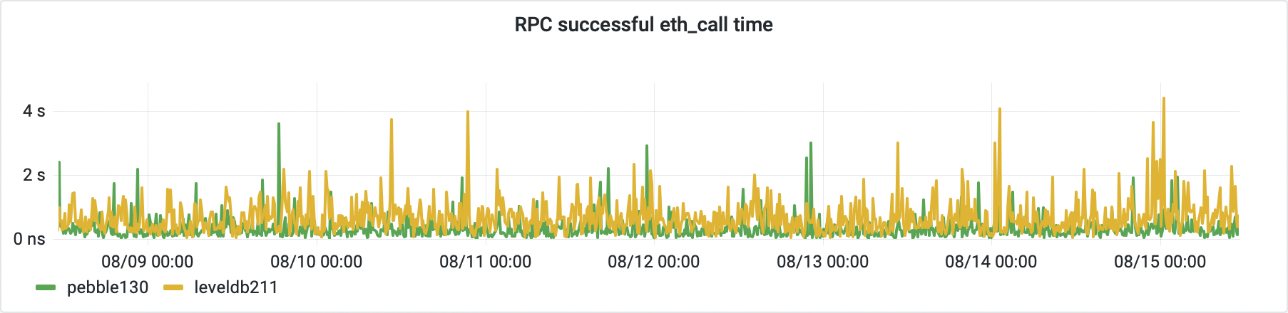 The default LevelDB backend is proven to be stable and performs very well in most common scenarios, but API nodes with high volume of client calls face a problem of large numbers of parallel random reads being requested from the database. This is a case where LevelDB cannot keep up with demand. We tried several different available solutions to address this problem, and PebbleDB came out as a backend with the fastest parallel reads throughput for RPC nodes..