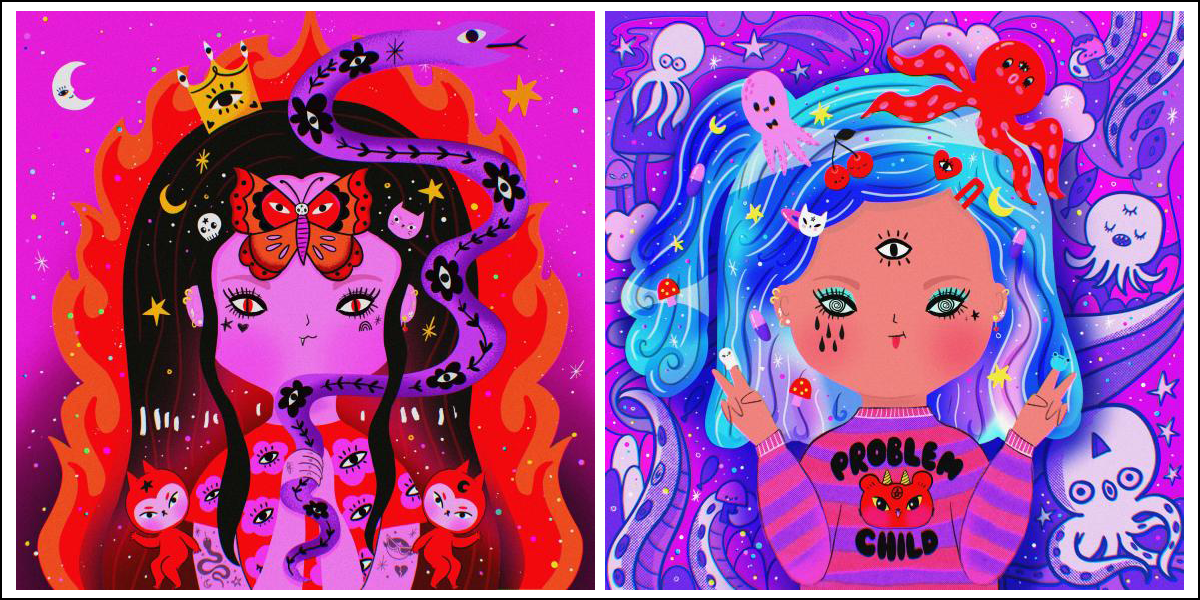Cosmic brings a varied background in art, illustration, and graphic design, and these diverse skills show in the mesmerizing detail in her work.