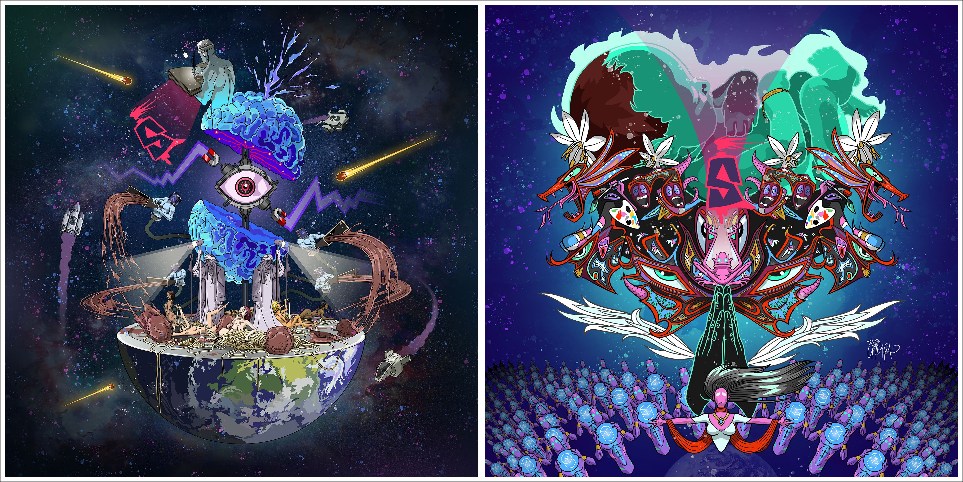 "Acid Cats #845" and "AstroKid #822" by Teens on Acid